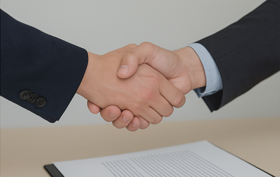 ご提案内容にご納得いただいたうえで正式に契約を締結します。契約条件や進め方はについてもご説明いたします。
